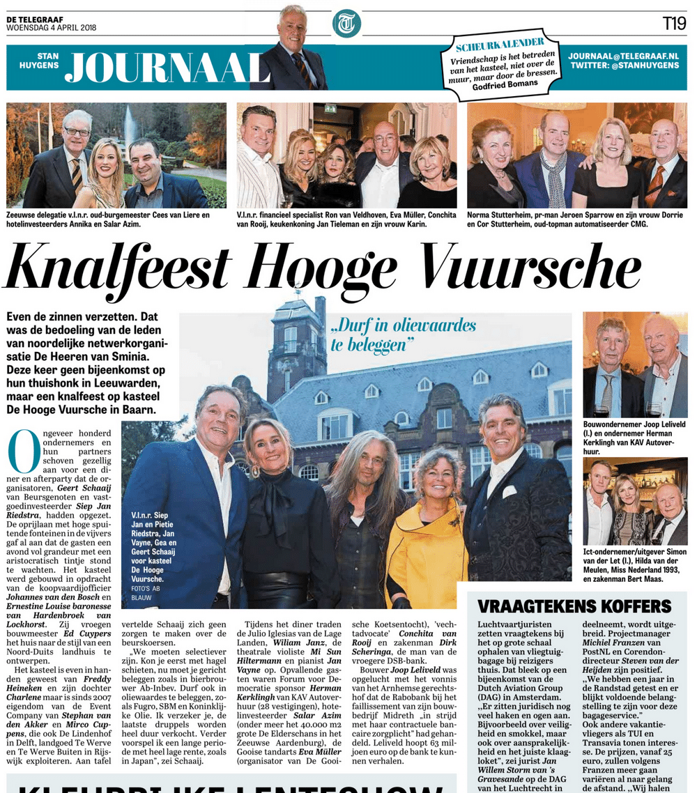 In het sfeervolle Baarn vond een groots netwerkevenement plaats op het iconische Kasteel De Hooge Vuursche. De gerenommeerde netwerkorganisatie De Heeren van Sminia organiseerde hier een stijlvol ondernemersfeest, waar ruim honderd prominente gasten uit binnen- en buitenland op afkwamen. Ondernemers, investeerders, mediamensen en topbestuurders verzamelden zich voor een avond vol netwerken, inspiratie en entertainment van hoog niveau.